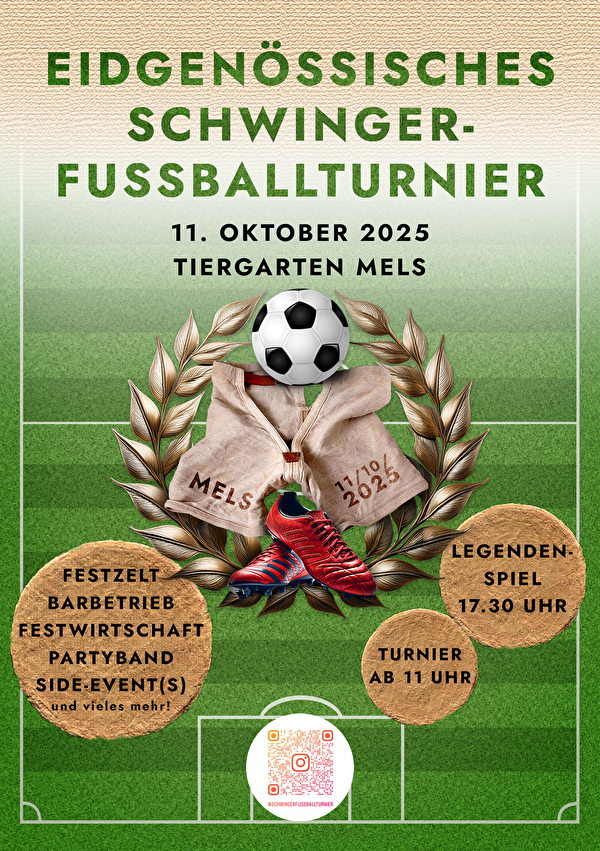 Mels zu holen. Glücklicherweise ist es dem OK genau in einem Jahr gelungen, in welchem in unserer direkten Nachbarschaft (Mollis) auch das Eidg. Schwing- und Älplerfest (ESAF) stattfinden wird, bei welchem bekanntermassen ein richtiggehender Hype die ganze Schweiz erfasst. Diesen „Schwung“ möchte das OK gerne mitnehmen und aus dem Fussballturnier, welches am Samstag, 11. Oktober 2025 und somit nur gut einen Monat nach dem ESAF stattfinden wird, ein kleines Volksfest machen.